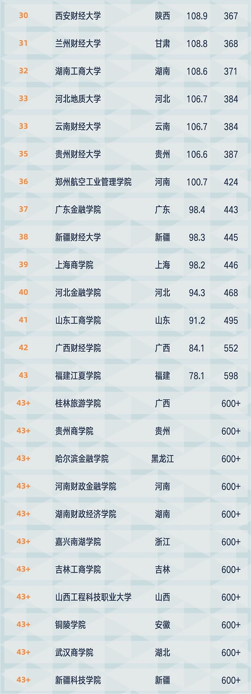 其中,对外经济贸易大学从第五名上升至第三名,连升2名。