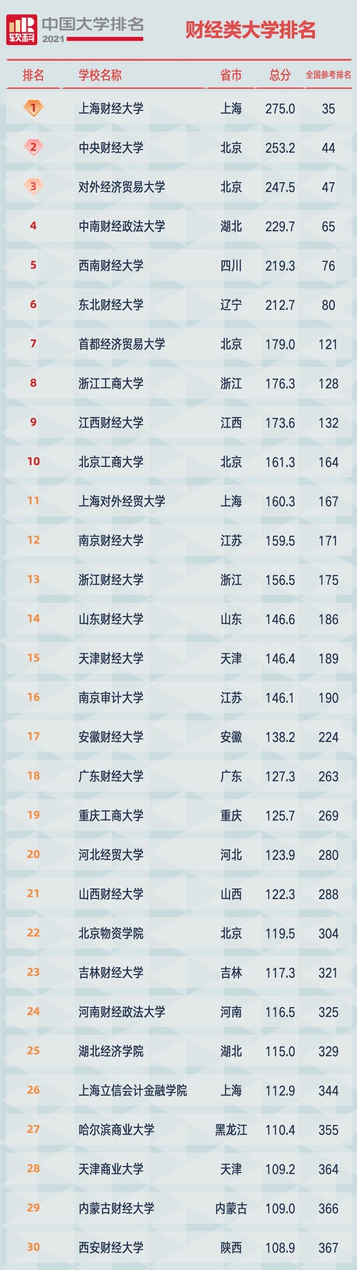中国财经类院校排名2021,财经类专业一直是我国乃至是全球上的红砖专业,每年学习财经类专业的学生数不胜数,因此,为方便大家选择财经类的优质院校,接下来和小编一起看看“中国财经类院校排名2021”的详情。