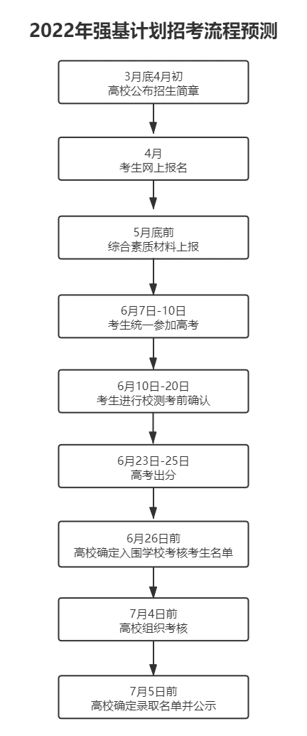 有意报考强基计划的考生建议提前关注各高校校测内容和报考流程,做到心理有数。根据2021年强基计划招考流程做出的2022年强基计划招考流程预测,供广大考生参考。