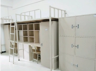 宿舍挺好的五人都是上床下桌有独立卫生间两个和洗浴一个有两个洗手台, 有柜子