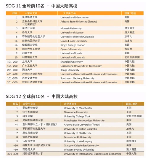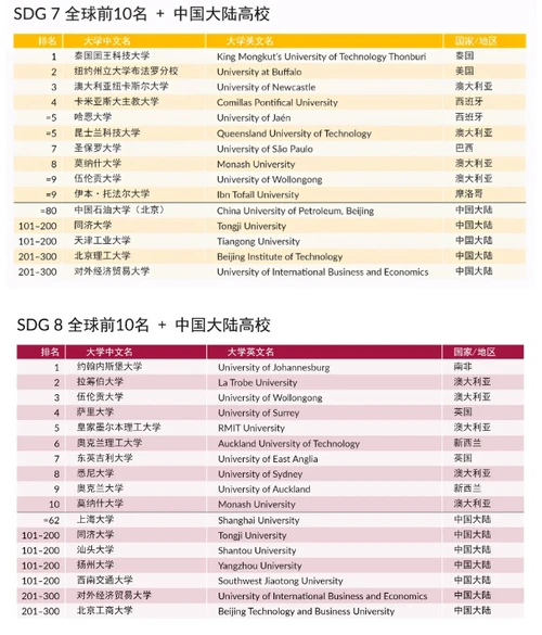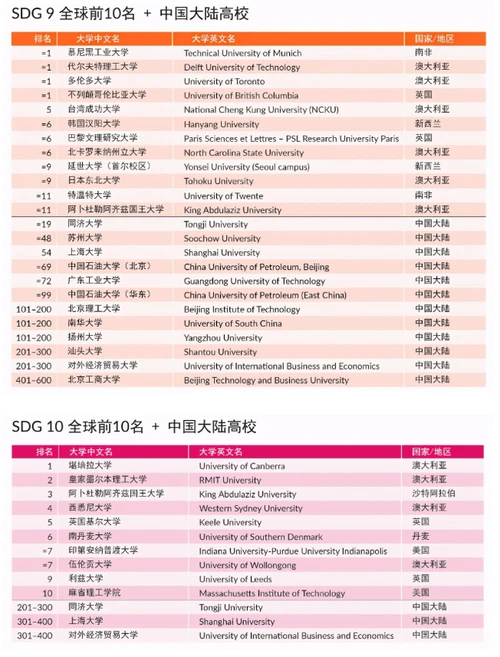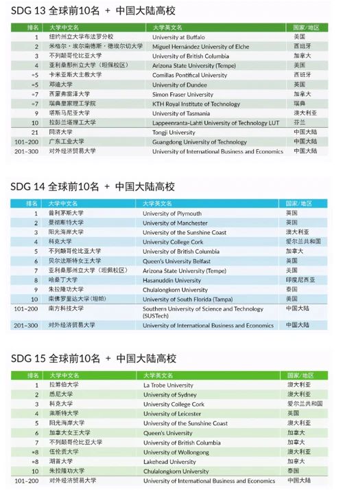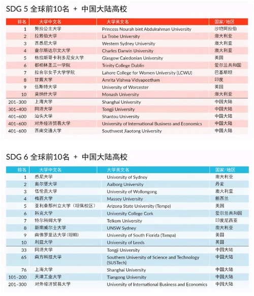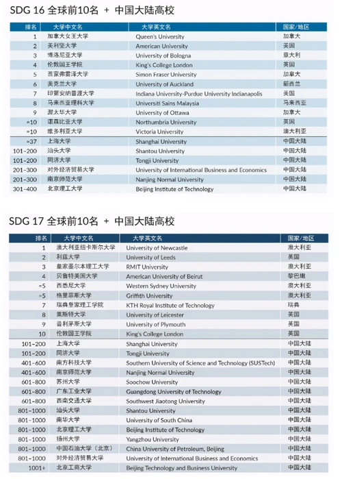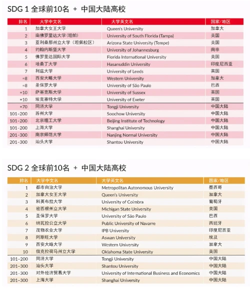 《单项可持续发展目标排名》SDG单项排名中排名世界第一的高校