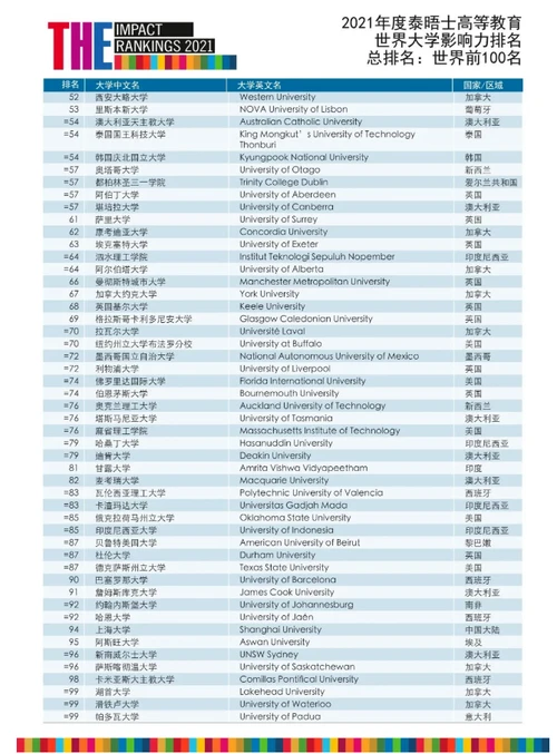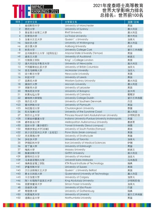 泰晤士世界大学影响力排名2021