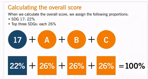 而排名的方法论是基于这17个目标的复杂计算:第17项目标促进目标实现的伙伴关系占22%,其余16个目标中,每个院校得分最高的3个目标各占26%,最终按照计算总分得出排名。