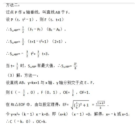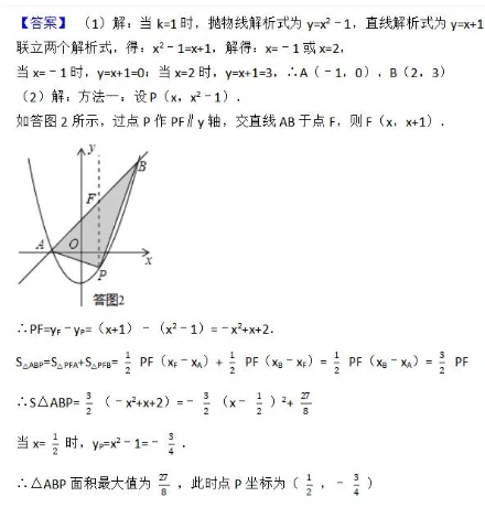 方法一:(1)当k=1时,联立抛物线与直线的解析式,解方程求得点A、B的坐标;