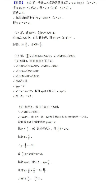 (ii)点H在点C上方时,根据(2)的结论,点M为直线PC与抛物线的另一交点,求出直线PC的解析式,与抛物线的解析式联立求解即可得到点M的坐标;