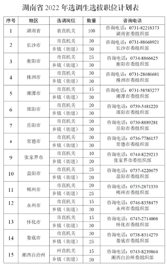 根据选调生工作的规定和要求,为切实做好湖南省2022年选调生选拔工作,现就有关事项公告如下