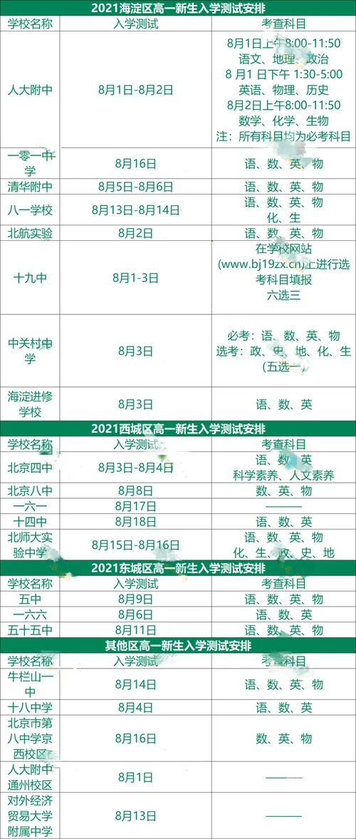 2021年北京各区高中入学考试时间汇总,转眼已经到了八月份,首先小编祝贺各位新高一的同学们正式踏入高中阶段,此外,小编收集了北京各区高中的入学考试安排情况,供大家参考,那么,具体详情,请见下文。