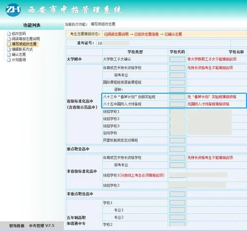 (5)西安中学民营机制,西安市第一中学、西安市第八十三中学宏志对等班录取。