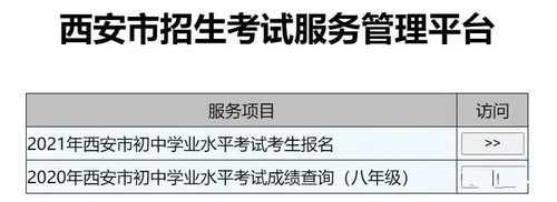 4.点击访问进入”2021年西安市初中学业水平考试考生报名“入口