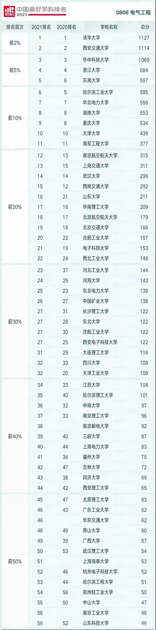 2021软科中国最好学科排名电气工程学科排名,高等教育评价专业机构软科昨日正式发布“2021软科中国最好学科排名”。很多相关专业的院校也有相应的排名,因此对于有自己理想专业但是对学校却把握不好的同学,具有很好的参考价值。以下是小编为大家整理的2021软科中国最好学科排名电气工程学科排名,供大家参考。