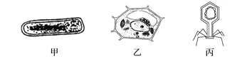 据图分析,甲生物没有成形的细胞核,为原核生物,细胞中没有①线粒体,但是有些原核生物仍然可以进行有氧呼吸,如好氧菌,A错误;图中结构③是成形的细胞核,原核细胞和真核细胞的主要区别是是否有核膜包被的成形的细胞核,而丙是病毒,没有细胞结构,B错误;用电子显微镜观察可以区分细胞甲和细胞乙是否为原核生物,C错误;结构②是叶绿体,是植物细胞特有的细胞器,但是植物细胞不一定含有叶绿体,D正确。