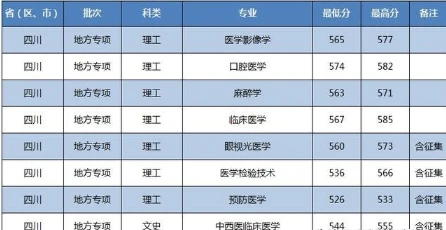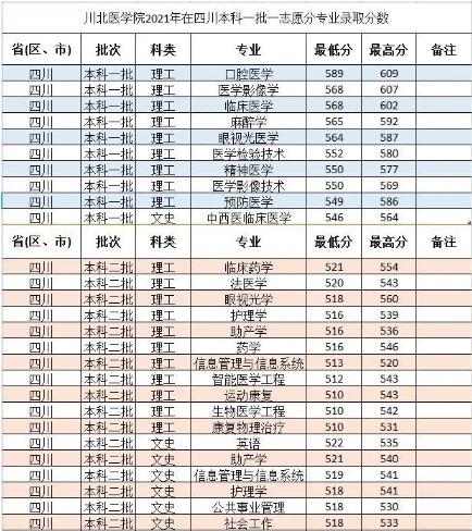 川北医学院录取分数线2021