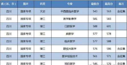三、国家专项录取分数线: