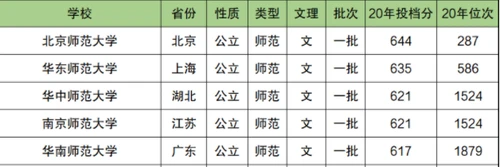 从文末的分数线汇总情况来看,分数线比较高的还是教育部直属的师范大学,以及各省教育厅直属的重点师范大学,如南京师范大学、湖南师范大学、四川师范大学等