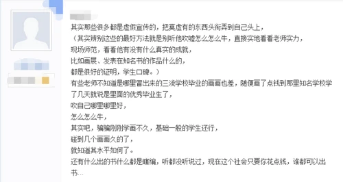 ③ 靠名人——有些画室打着名师的旗号(XX美院教授亲自授课)招生,收费还颇高,但其实那些所谓的“名师”就是露个面走个过场而已