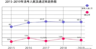 2019年法考报名人数为:60万左右,整体通过率为14%