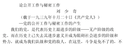 ()撰写了《公开工作与秘密工作的区别及其联系》《论公开工作与秘密工作》等系列文章,对公开工作与秘密工作的特点、任务、区别与联系进行了论述。