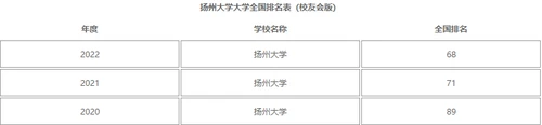 根据最新的2022年校友会中国大学排名榜单我们可以知道扬州大学大学在全国的排名为:68名