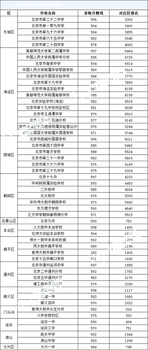 如果考生的成绩在645分以上,那么在全区也是前几的成绩了,所以基本上北京所有的高中都可以选择。2021年各区645分以上的考生分数&区排名暂未公布,需要自己打中招办电话进行确认。