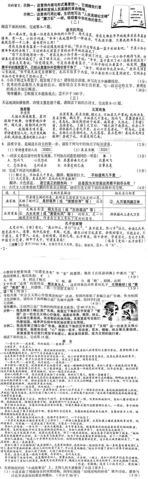 2021年山西中考答案语文,山西今年的中考于6月22日结束,中考的答案已在6月23日公布,目前小编为大家收集整理了语文科目的答案情况,考生小伙伴们可以为自己的科目成绩进行预估。