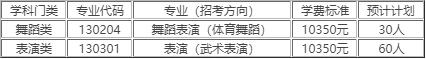 表演类招生省份:北京、河北、山西、内蒙古、浙江、安徽、山东、河南、湖北、湖南、广东、重庆、陕西、甘肃、黑龙江、广西、江苏和江西。其中,江苏和江西只招武术表演方向。