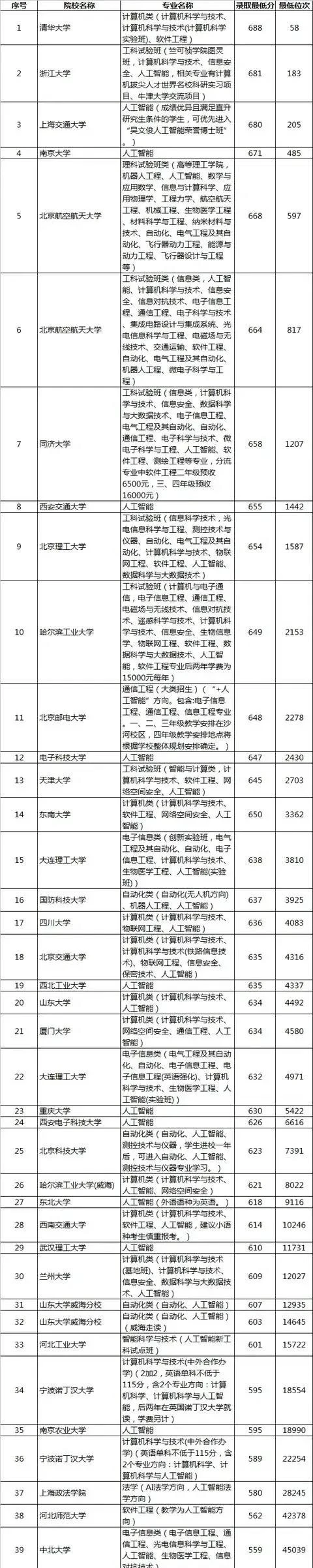 国内各高校计算机和人工智能等相关专业录取分数排行,清华,浙大,上交,南大,北航前五位