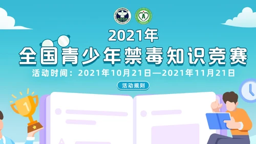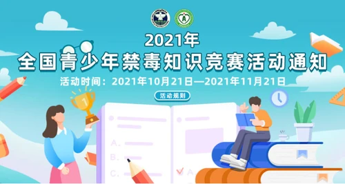 为切实落实国家禁毒委员会《关于加强新时代全民禁毒宣传教育工作的指导意见》,巩固学校毒品预防教育成果,增强在校学生识毒防毒拒毒意识和能力,国家禁毒办、教育部指导中国禁毒基金会举办的2021年全国青少年禁毒知识竞赛即将开赛。此次竞赛为教育部公布的2021—2022学年面向中小学生的全国性竞赛活动之一。竞赛将从10月21日开始,分网上初赛和现场总决赛两个阶段进行,总决赛初定于12月上旬在广西壮族自治区柳州市举行。