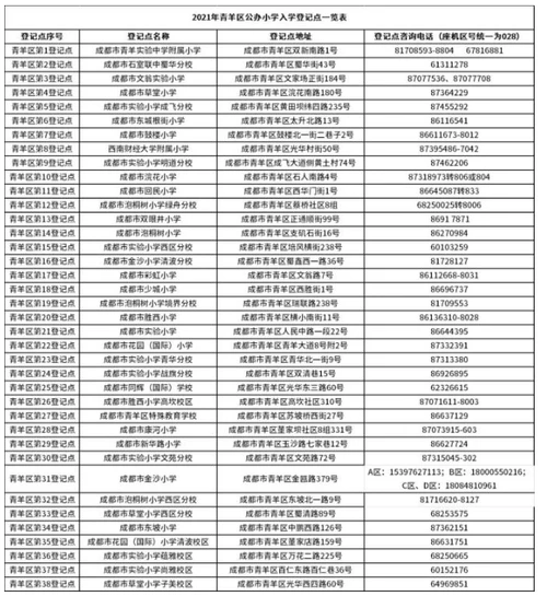2021年青羊区户籍适龄儿童公办小学入学报名即将开始!按照成都市教育局的统一安排,青羊区各公办小学登记点于4月28日发布了户籍适龄儿童公办小学入学报名登记公告,您可前往登记点了解信息采集、登记范围、现场资料审核等事宜。登记点信息附后。