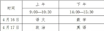 2022年安徽体育单招考试时间:文化考试时间:2022年4月16至17日;考试科目:语文、数学、政治、英语;考试分值:每科150分,总分600分,使用国家通用语言文字作答。文化考试具体时间如下: