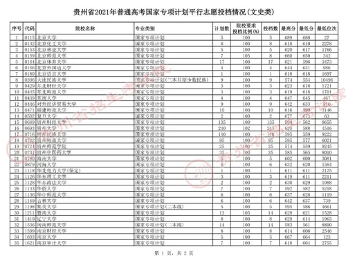 2021贵州高考国家专项计划投档结果公示