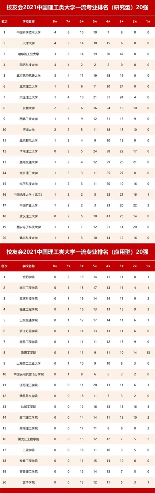 在校友会2021中国大学一流专业排名中,首次按照“研究型”和“应用型”对中国大学本科专业进行分类评价。报告显示,北京大学、清华大学、中国人民大学位列2021中国一流专业排名(研究型)前3强;合肥学院、南京工程学院、重庆科技学院雄居校友会2021中国一流专业排名(应用型)前3甲。