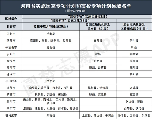 高校专项计划实施区域共53个县:国家专项计划确认的38个县和15个原省定扶贫开发重点县。(见下图)