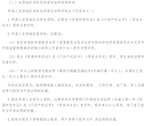 然后咱们来拿西城的看看里面非京资格审核的细则和要求