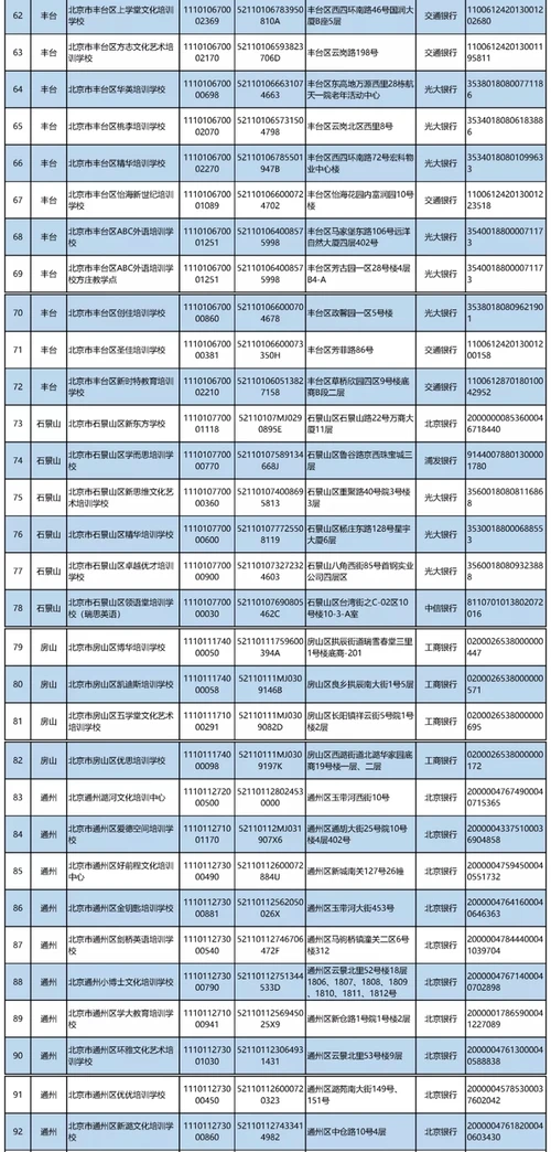 据界面教育统计,西城区上榜数量最多为24家,东城区有16家上榜,朝阳区5家。学大教育(000526.SZ)劲松校区、大悦城校区均上榜。海淀区有15家、丰台区12家、石景山区6家、房山区4家,通州区16家,顺义区12家、大兴区5家、昌平区18家、平谷区8家、怀柔区6家、密云区4家、延庆区仅一家为北京市延庆区思高培训学校。