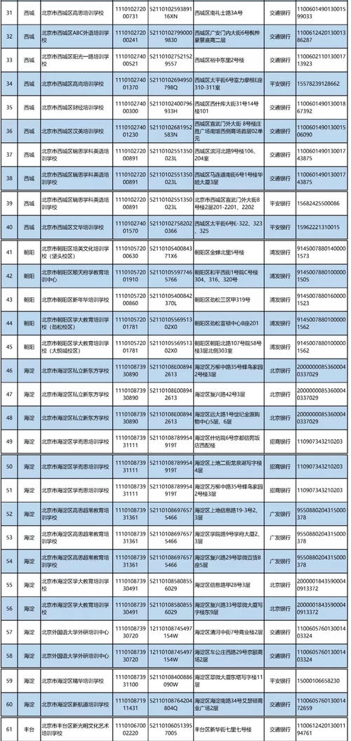 首批“白名单”的公示内容包括培训机构名称、办学许可证号、统一社会信用代码、办学地址、监管银行和监管账户等各类信息。