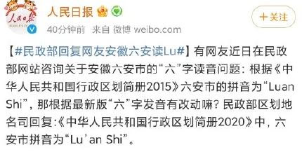 民政部回复网友安徽六安读Lu 安徽六liù安还是六lù安,近日新发疫情使得安徽六安牵动人心。有网友近日在民政部网站咨询关于安徽六安市的“六”字读音问题,关于这座城市名的读音,也引发热议。下面是小编整理的相关信息,一起来看看吧。