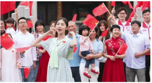 200多名群众手摇国旗,同唱《我和我的祖国》
