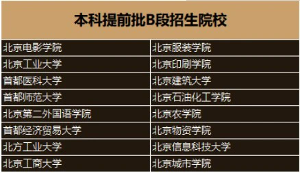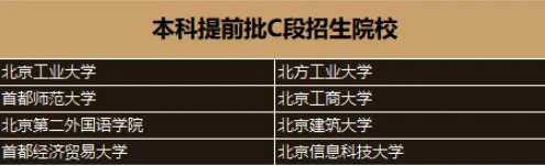 本科提前批设置A、B、C三段,并按顺序依次录取,每段均设置两个顺序志愿,每个志愿填报1所高校。艺术院校(专业)、体育院校(专业)、军事院校、武警部队院校、公安类等院校(专业)在A段录取;“双培计划”和“外培计划”原则上在B段录取;“农村专项计划”在C段录取。
