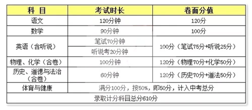 新中考总分由460分变为610分,计分科目总分增加了150分。