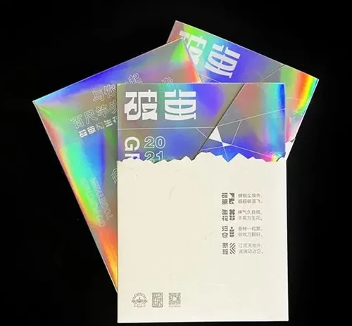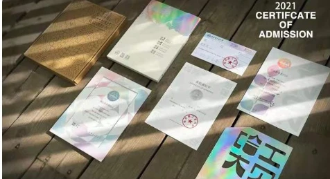 录取通知书共分为“ 破茧 ”、“ 生花 ”、“ 归仓 ”和“ 新程 ”四个章节。其中,“ 破茧 ”外封套象征了一种突破自我、破茧而出的含义;通知书外盒则烫印了冰裂纹的样式,来呼应“冰冻三尺非一日之寒”的自我勉励与坚持;通知书本身采用了“樱雪”特种纸张,它的烫印工艺具有很强的凹凸触感,象征着学生们一步一个脚印的积累与努力。