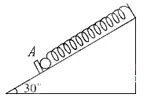 如图所示,在倾角为300的光滑斜面上端系有一劲度系数为k=200 N/m的轻质弹簧,弹簧下端连一个质量为m="2" kg的小球,球被一垂直于斜面的挡板A挡住,此时弹簧没有形变。若挡板A以a="6" m/s2的加速度沿斜面向下做匀加速直线运动,斜面固定不动,取g="10" m/s2,则( )