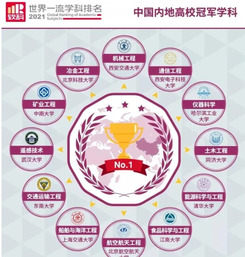 在2021年软科世界一流学科排行榜中:中国内地12个学科排名世界第一,而江南大学是这12所大学之一!