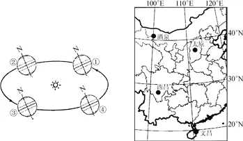 ①酒泉的白昼时间最短 ②太原的地方时最早 ③西昌的自转线速度最小 ④文昌的正午太阳高度最大