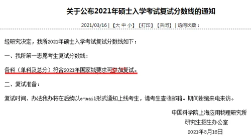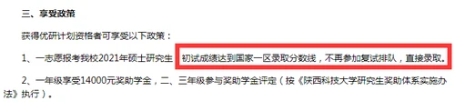 1、一志愿报考我校2021年硕士研究生,初试成绩达到国家一区录取分数线,不再参加复试排队,直接录取。
