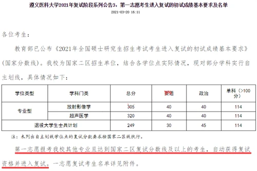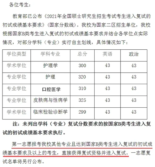 第一志愿报考我校其他专业且达到国家B类考生进入复试的初试成绩基本要求及以上的考生,直接获得复试资格并进入复试。一志愿复试名单将另行公布。