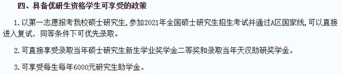 1.以第一志愿报考我校硕士研究生,参加2021年全国硕士研究生招生考试并通过A区国家线,可以直接进入复试,同等条件下可优先录取。