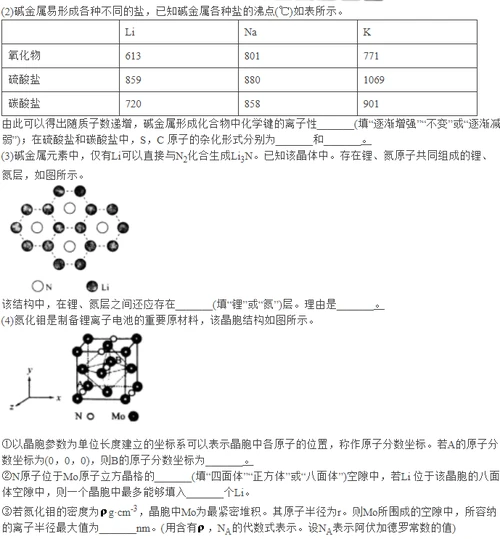 碱金属及其化合物在生活、科研等领域用途广泛。回答下面相关问题:
