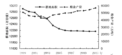 【1】1999?2011年间我国耕地面积和粮食产量变化的特点是