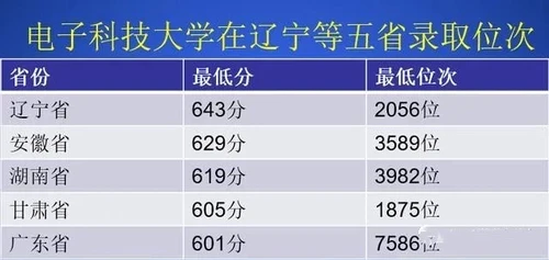 三所高校中,电子科技大学的录取分数和位次更高一些,途虫汇总了三所大学在辽宁,安徽 ,湖南,甘肃和广东五省的录取最低分和最低位次,供大家参考。