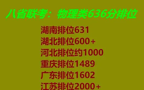 更多的数据暂时还不得而知,不过有零星的数据表明湖南物理类636分排位631名,以此来对比一下此次八省联考湖南的成绩如何?
